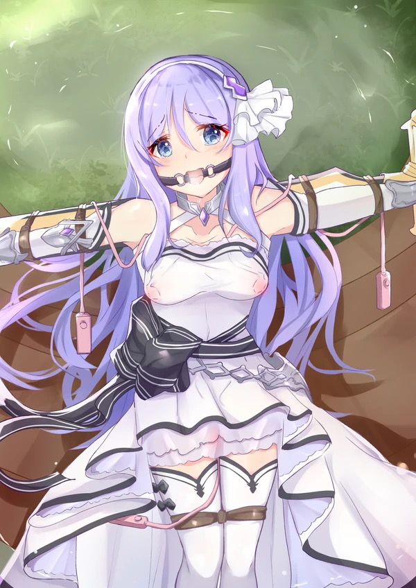 紧接着接下来是鼻钩,鼻子被钩住,迫使现在张大小嘴的小依只能被迫抬起小脑袋。