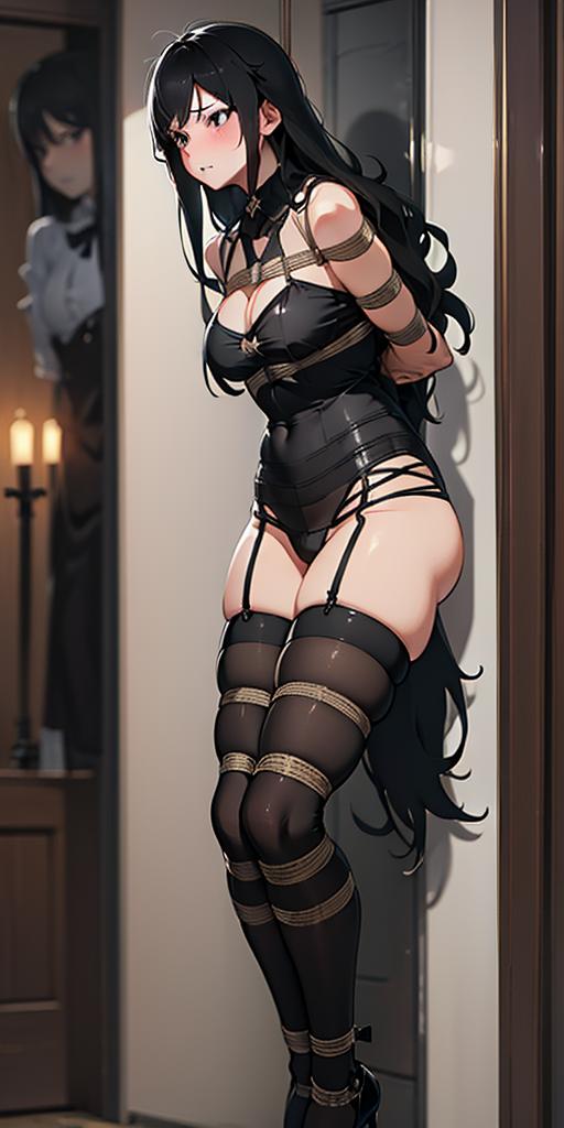 他们将紫罗兰带到一根柱子旁,拿起绳子将紫罗兰吊起,让紫罗兰仅能勉强垫脚站立。又拿铁索绑了十多圈,将紫罗兰和柱子固定在一起,这样紫罗兰浑身上下,除了之前的绳子和丝袜,又多了一圈铁链,完全动弹不得。下面还时不时被[X]刺激,不断发出“哦…嗯…”的叫声,听得两个男生内裤都被高高撑起,不断告诫自己要冷静。