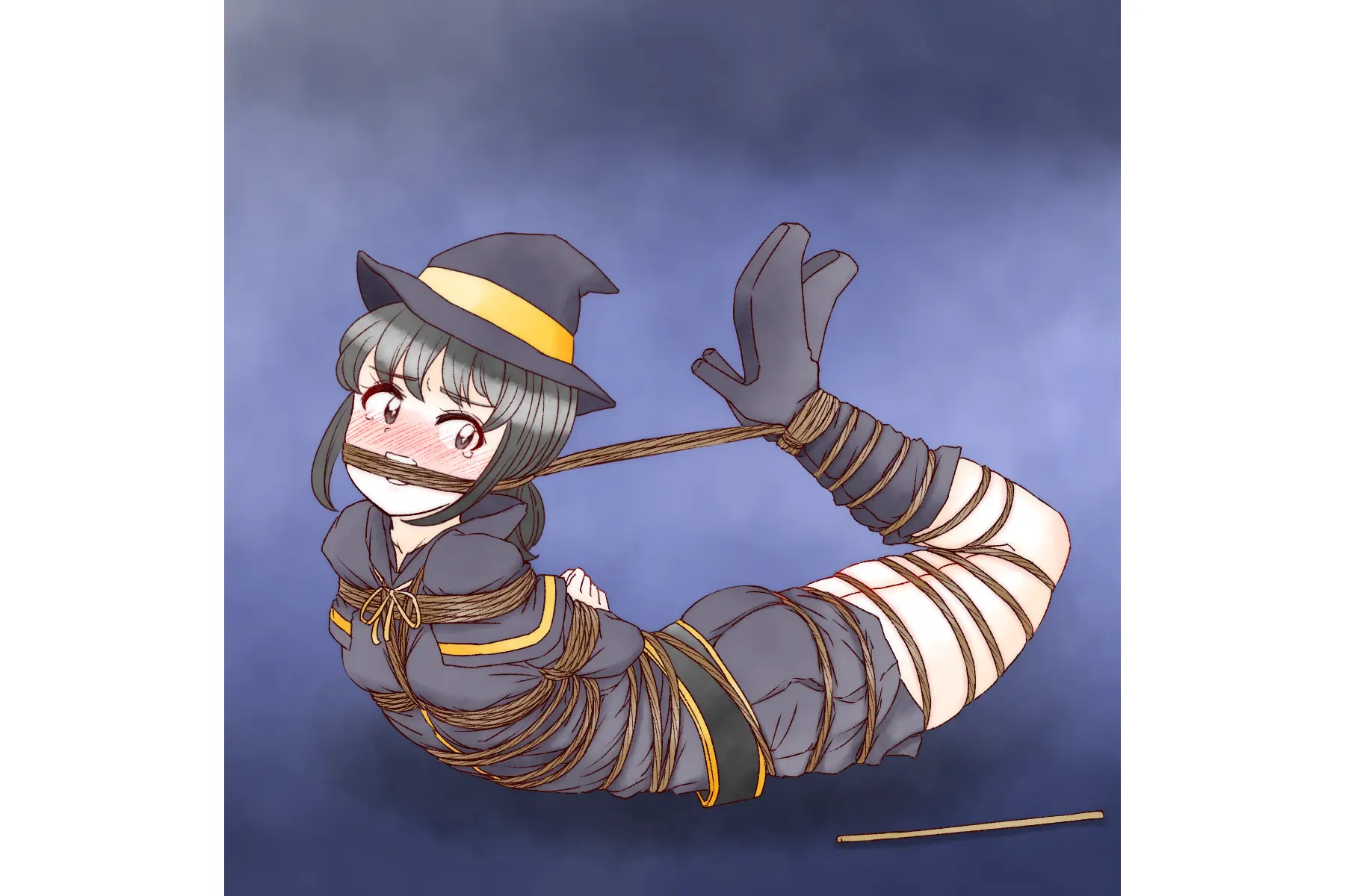 绳子不仅将她的全身紧紧缠绕,还像马嚼子一样封住了她的嘴,让她无法说话。最后,她的脚踝和嘴被绳子连在一起,完全无法站起来。