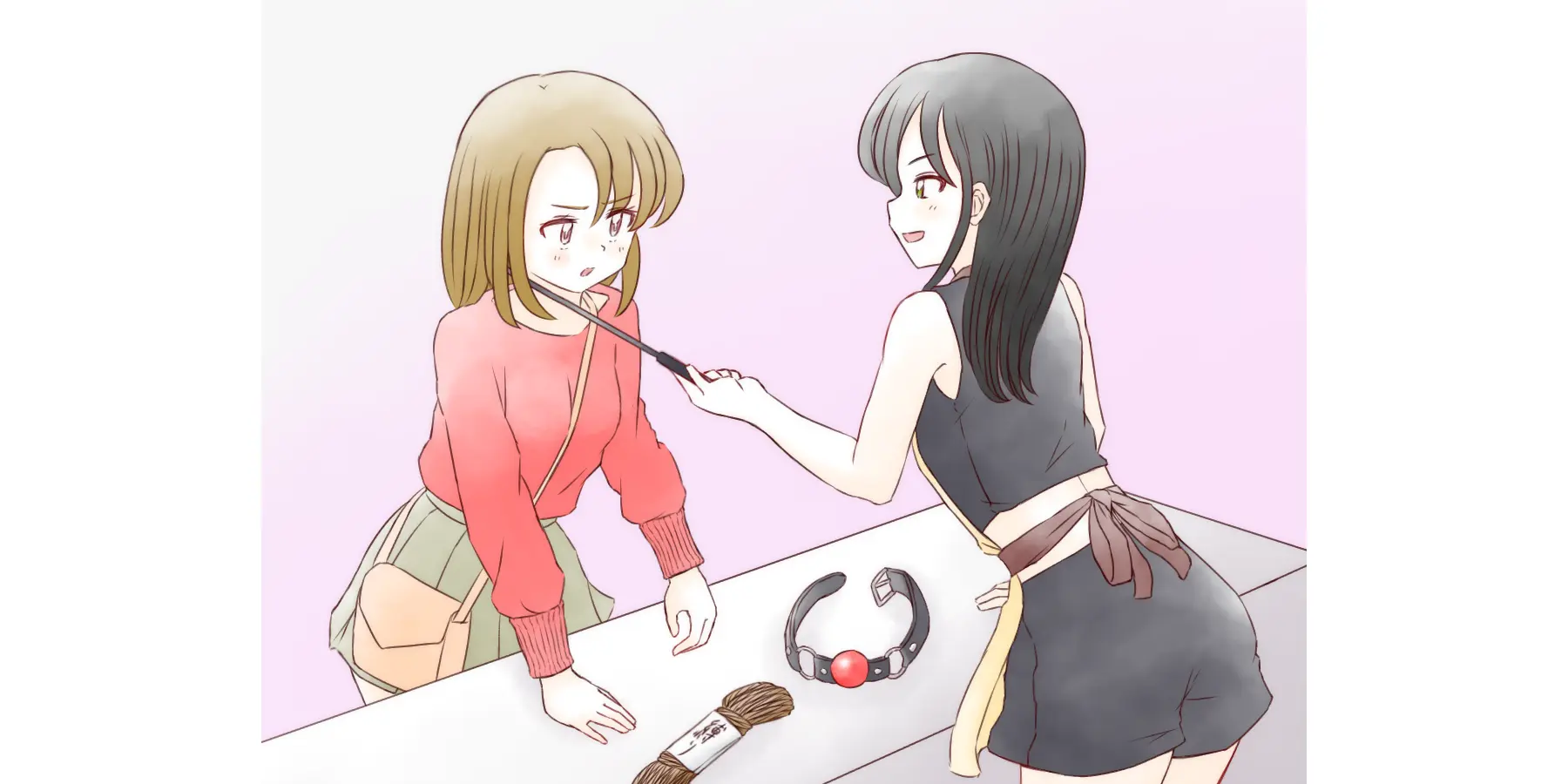当我拿起货架上陈列的SM用品时,穿着束缚装和围裙的店员这样说道。