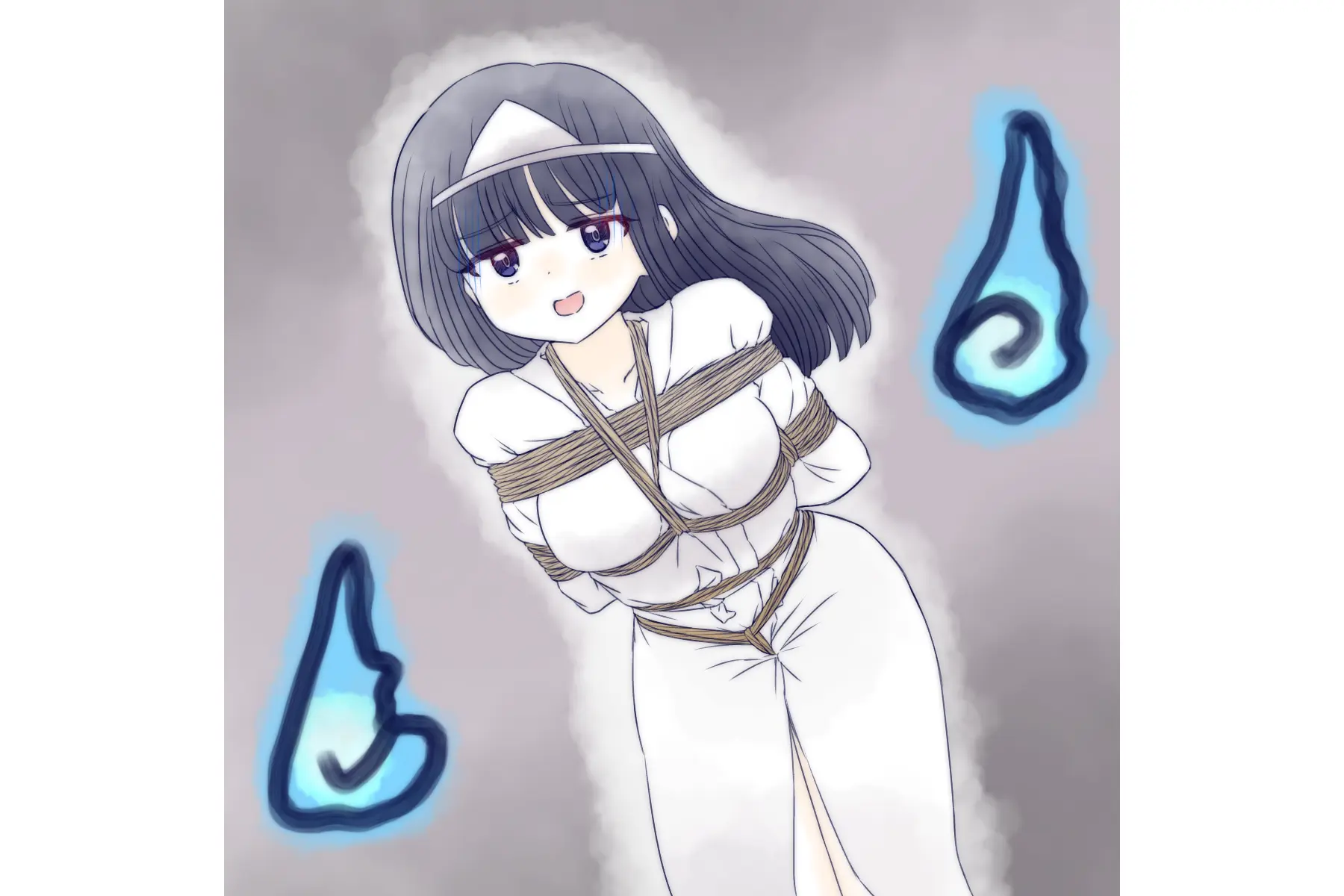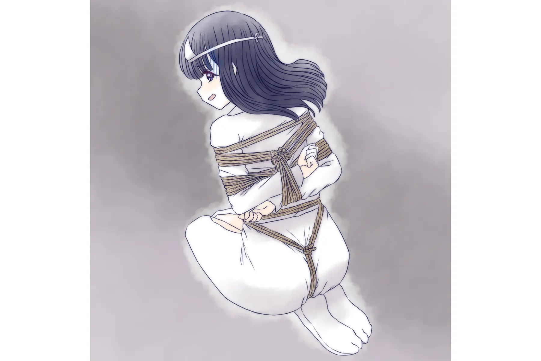 "我只是...!那个...自己绑着玩时解不开了...碰巧剪刀美工刀都找不到...羞于求救才饿死...变成幽灵后不知为何还保持着捆绑状态...只是迫不得已才这样的普通女大学生(生前)!!"