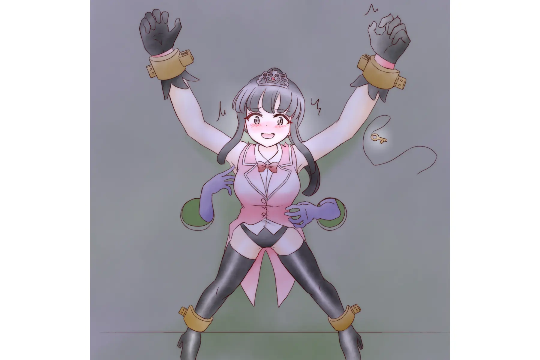 拼命扭 动身 体只换来拘具哐当作响,冷酷地禁 锢着美少女魔术师。