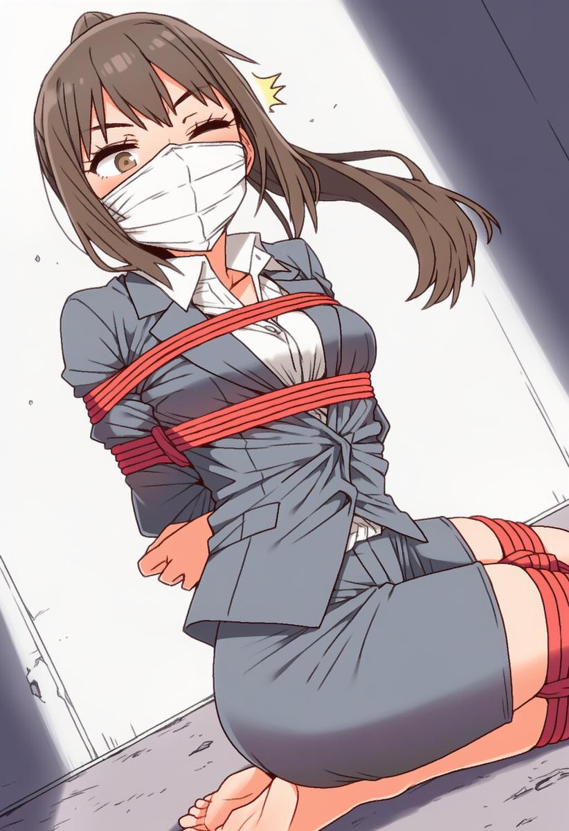 俯瞰的身体上纵横着一条鲜红的绳子,紧紧地勒紧胸部的上下,连肩膀都不能摇晃。