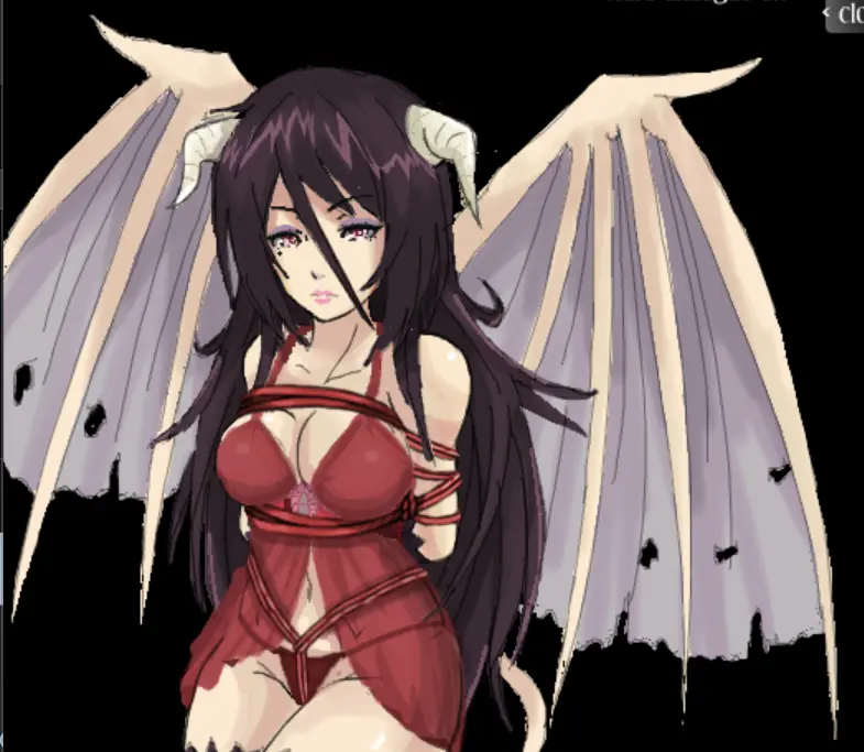 那是一位被精心束缚的魅魔。她有着如夜色般深邃的长卷发,几缕发丝汗湿地贴在光洁的额角,肌肤白皙得近乎透明,头顶一对小巧的弯曲犄角,背后是一对类似蝙蝠的翅膀......