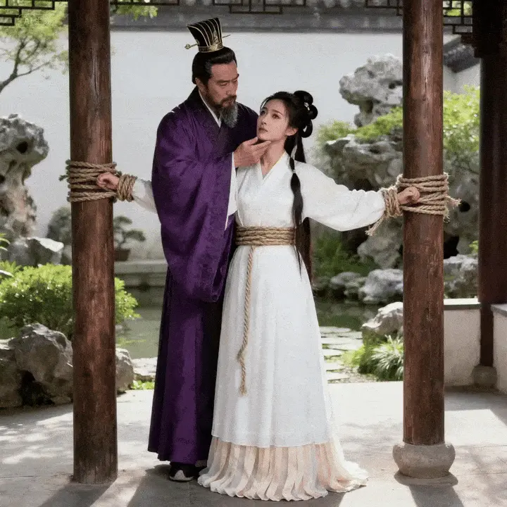 马车辘辘,驶向皇宫。车厢内,气氛凝滞得几乎能滴出水来。曹操闭目养神,手指无意识地敲击着座椅扶手,发出规律的轻响,仿佛城外渐近的战鼓。萧云衣双手被蛟筋索牢牢反剪身后,那淡金色的绳索不仅束缚着她的肢体,更隐隐压制着她丹田内力的流转。每一次马车的颠簸,都使得绳索更深地陷入她手腕与胸脯的嫩肉中,带来一阵阵混合着疼痛与屈辱的摩擦感。破碎的衣衫难以蔽体,仅存的藕荷色肚兜在蛟筋索的紧勒下,勉强遮掩着呼之欲出的丰盈,顶端的蓓蕾因这持续的压迫与摩擦,已然敏感地[X_X],隔着薄薄丝绸,清晰地勾勒出诱人的轮廓。