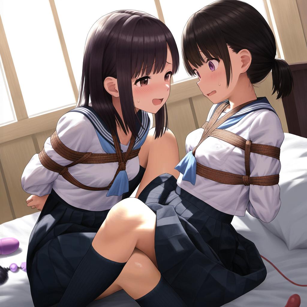 在一所普通高中里,有两个关系超好的女生:田中爱子和铃木遥。爱子是个活泼开朗的女孩,一头齐肩的黑发,总是带着调皮甚至有些狡黠的笑容。她是班上的开心果,沉迷于动漫和漫画,尤其是那些甜甜的百合故事,内心深处常常幻想能与身边的她发生些什么。她的家庭在市中心的一个小公寓,父母忙于工作,这给了她不少自由空间。遥则是个文静的女生,马尾辫扎得整整齐齐,眼睛带着些微紫色的光泽,看起来总是微微害羞。她是学霸型,喜欢心理学和安静的下午茶时间。两人从初中就认识了,因为同班而成了闺蜜,经常一起去卡拉OK唱歌,或者在学校屋顶吃......