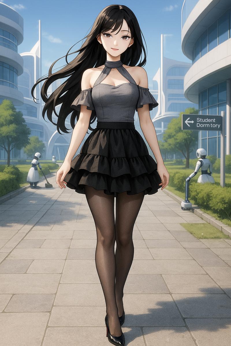 暮春时节,萱园新绿如织。宋萱穿着一身极其贴身的粉色乳胶紧身衣贞操服,双腿并拢,双手小臂交叠着贴在腰后,全身挺得笔直,站在走廊栏杆前,眺望着远方城市虚影化作的浮光。