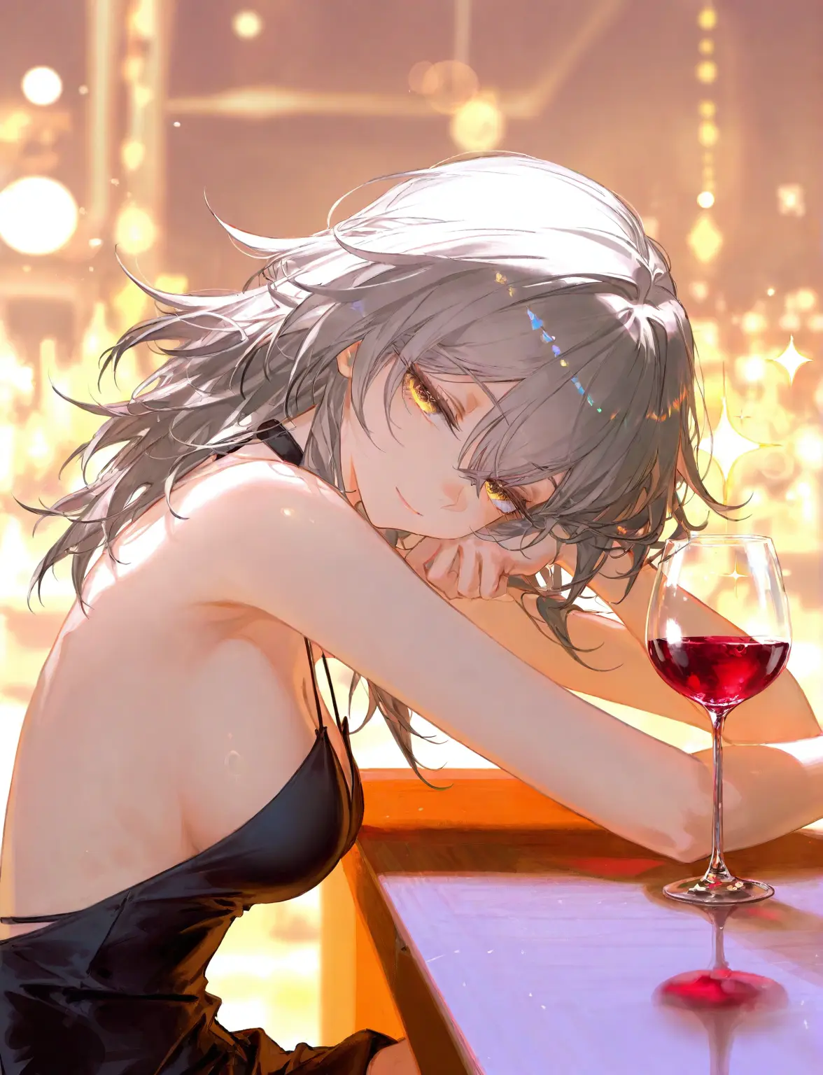 目光移向吧台,一位漂亮精致的灰发小姐正在百无聊赖地摆弄着酒杯…......