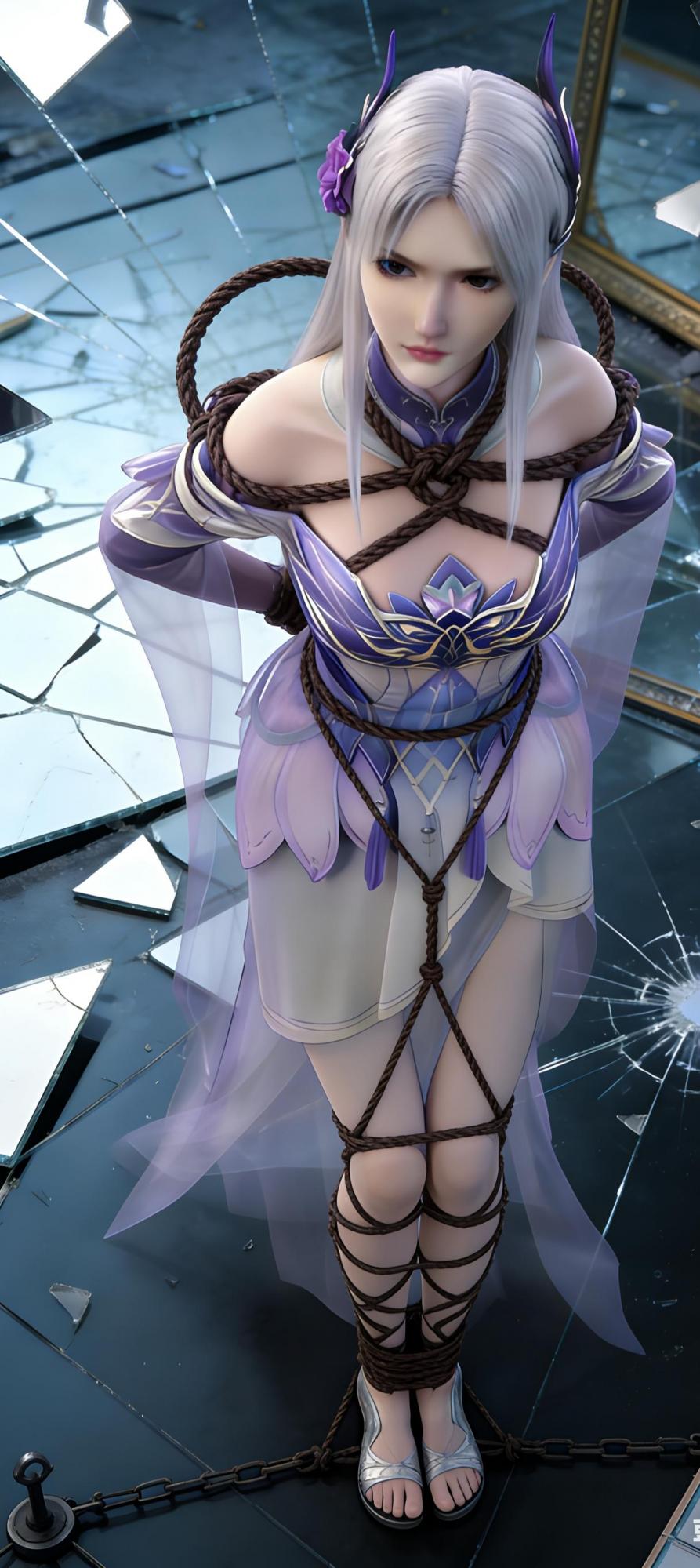 他爱怜地抚摸着镜面,目光贪婪地流连于镜中那双被淡紫色水晶包裹的玉足,想象着它们在不远的将来,会因为自己一个念头而颤抖、蜷缩、无助地承受万般折磨的模样。