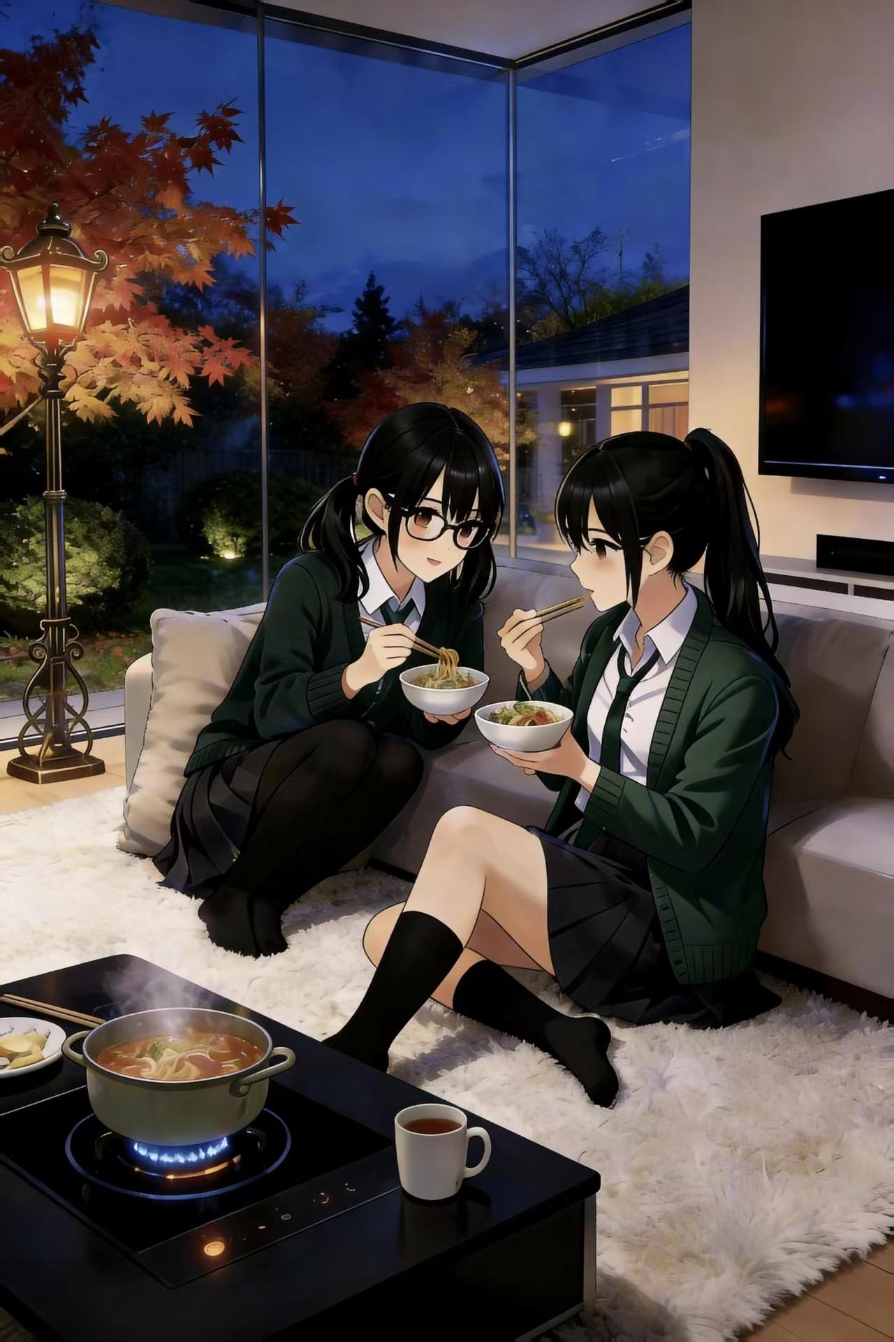 配送来得很快,身着制服、态度恭敬的别墅区工作人员将沉重的保温提篮送至门口。馥接手提进来,两人一起在低矮的茶几上铺开。精致的铜锅里,奶白色的高汤正微微滚动,周围码放着色泽鲜润的霜降牛肉片、手打年糕、各种菌菇和时蔬。馥按下茶几边缘自带的嵌入式电加热器开关,轻微的电流声后,锅底维持住咕嘟咕嘟的微小沸腾。