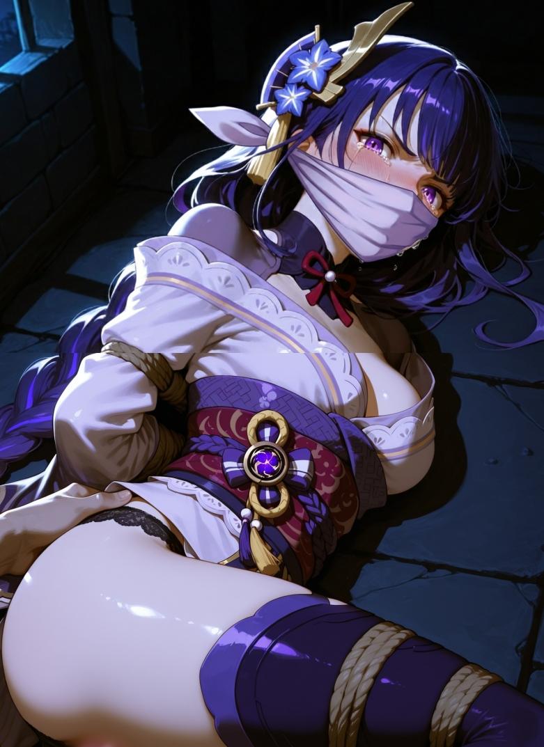 影向山深处,一处人迹罕至的废弃凉亭。夜风穿过幽深的雷樱树林,卷起几片残叶,带来稻妻特有的湿冷与微甜的草木气息。残月如钩,月光勉强穿透浓重的云层,将惨白的光晕投射在亭中两道曼妙的身影上。