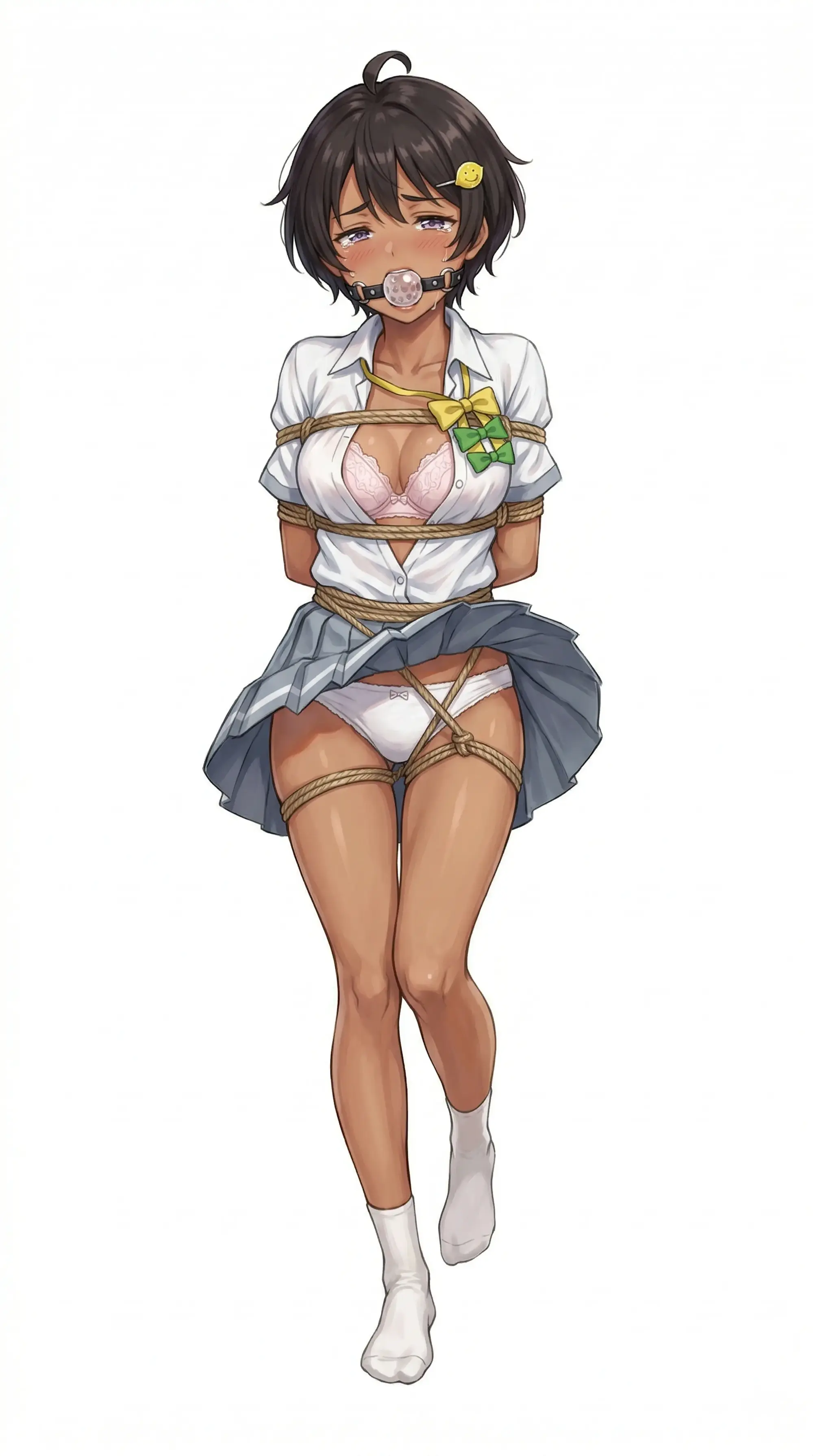 柠檬低着头,不敢看任何人的眼睛。咬了咬牙,手伸到背后,解开运动胸罩的搭扣。那件深蓝色的布料从她身上滑落,露出少女的酥胸,小麦色的皮肤,因为常年锻炼而紧致有弹性,曲线柔和而饱满......