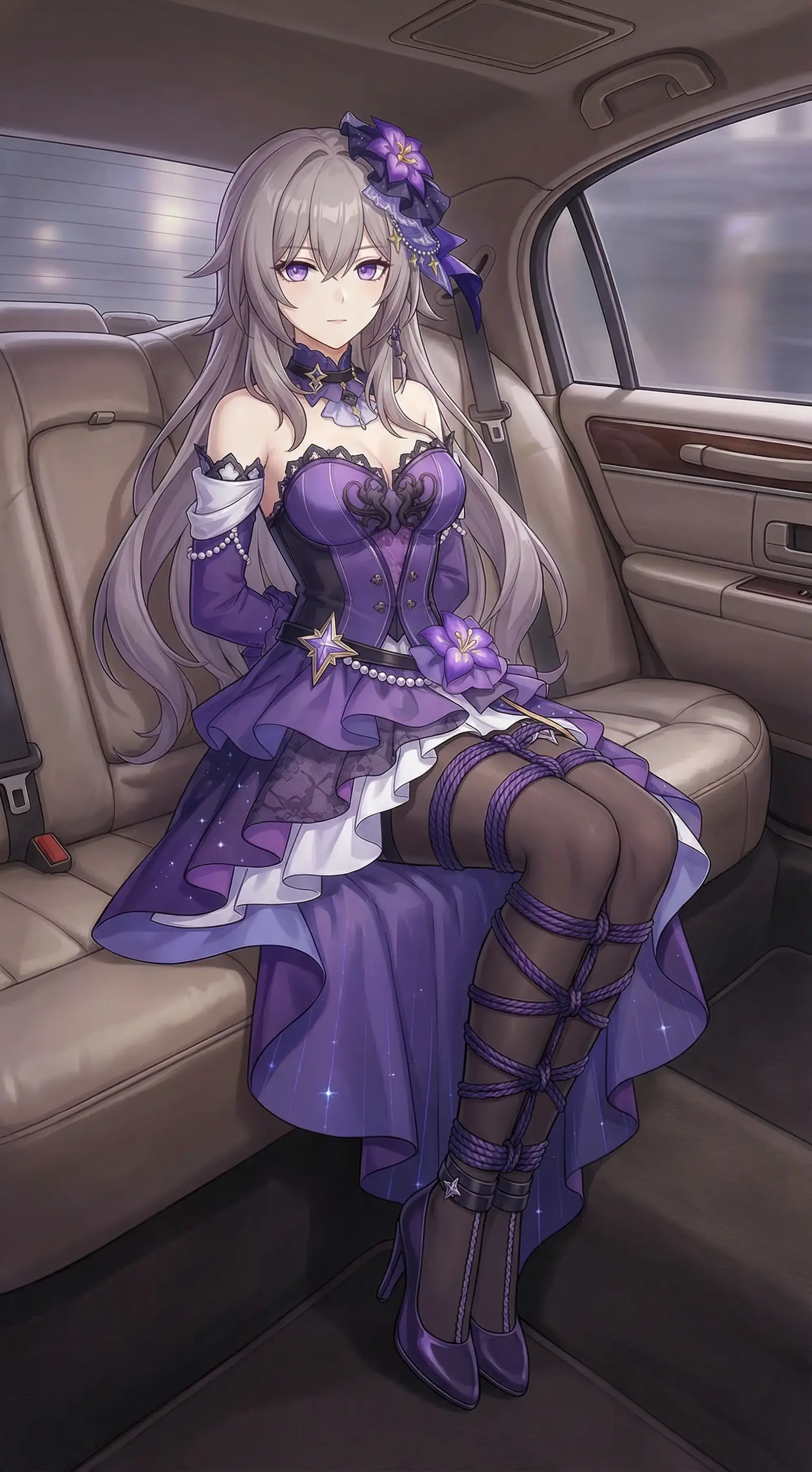 她身上那件暗紫色的露肩晚礼裙剪裁极其考究,紧致的鱼骨束腰将她原本就纤细的腰肢勒得不盈一握,裙摆层层叠叠的蕾丝如同繁复的波浪,虽极尽奢华,却也限制了双腿的迈动幅度。这种被布料轻微“束缚”的感觉,对于习惯了自由的她来说......