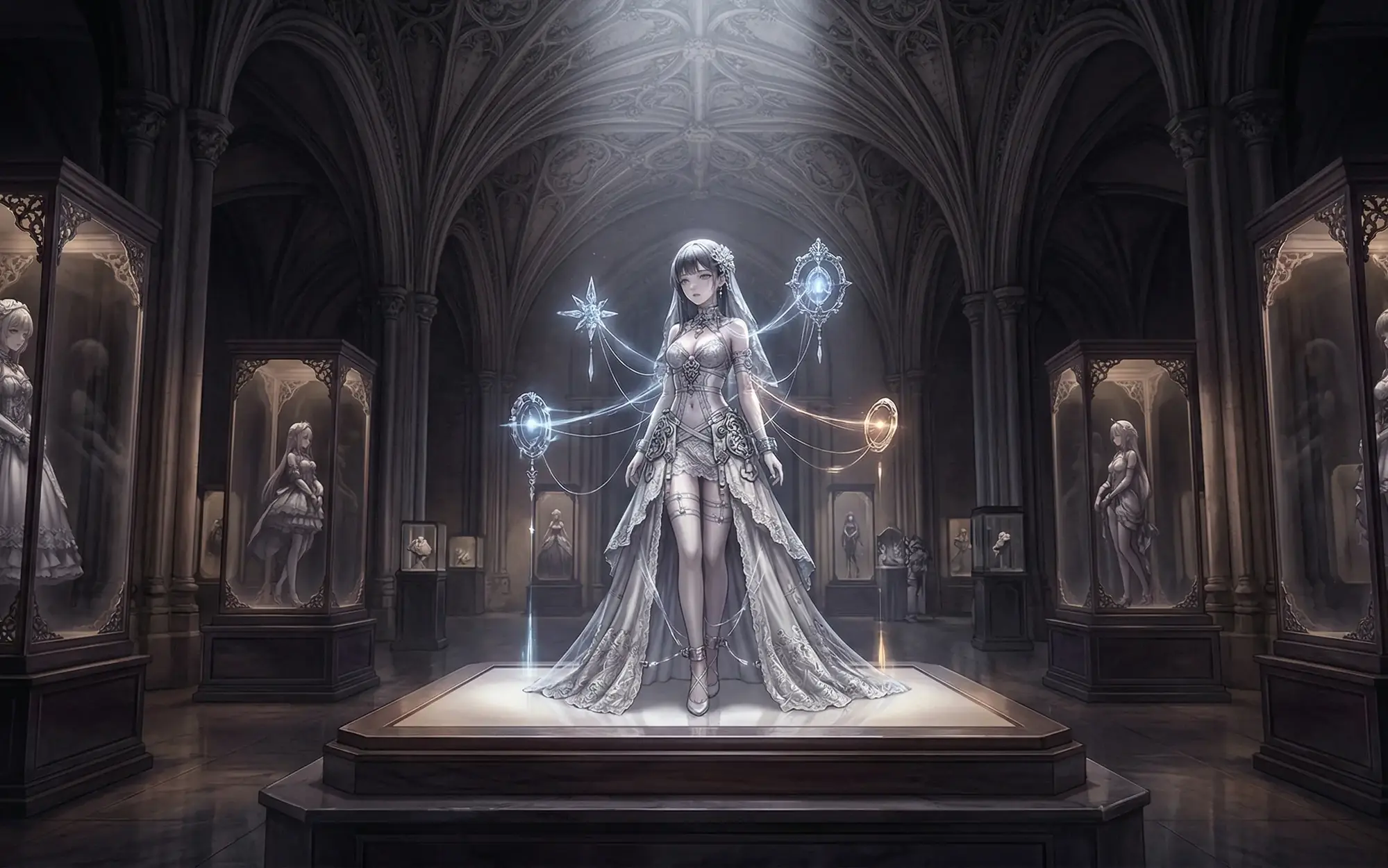 2. 访客的凝视即催化剂:您是这场永恒演出的一部分。藏品能模糊地感知到玻璃外影影绰绰的人形和注视的目光。许多藏品会对目光产生反应——有的会试图别过脸,有的会耻辱地闭上眼睛(但眼皮的颤动暴露了一切),有的则会用盈满泪水的眼睛空洞地回望,这种视线接触能带来强烈的颤栗。本馆鼓励您长时间地、仔细地凝视。您的观看,本身就是施加于藏品精神上的压力砝码。您靠近玻璃的呼吸、您与同伴低语的模糊声响,都可能引发她们新一轮细微的挣扎。请欣赏这种因你而起的反应。