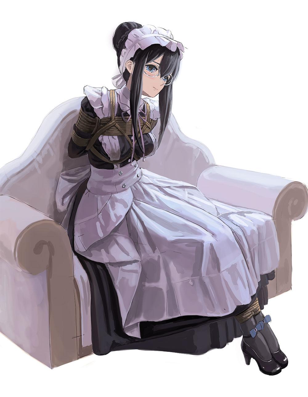 长裙款女仆装,裙摆到脚踝。黑丝袜......