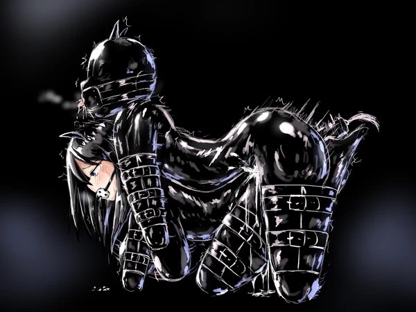 然后就是两只黑色的皮革狗狗分别连接在捆绑在一起的两根引领锁链上。