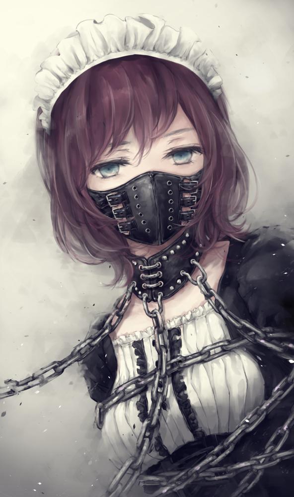 小紫的脸上带了一个皮革的面具,脖子上套着一个皮革制的项圈。