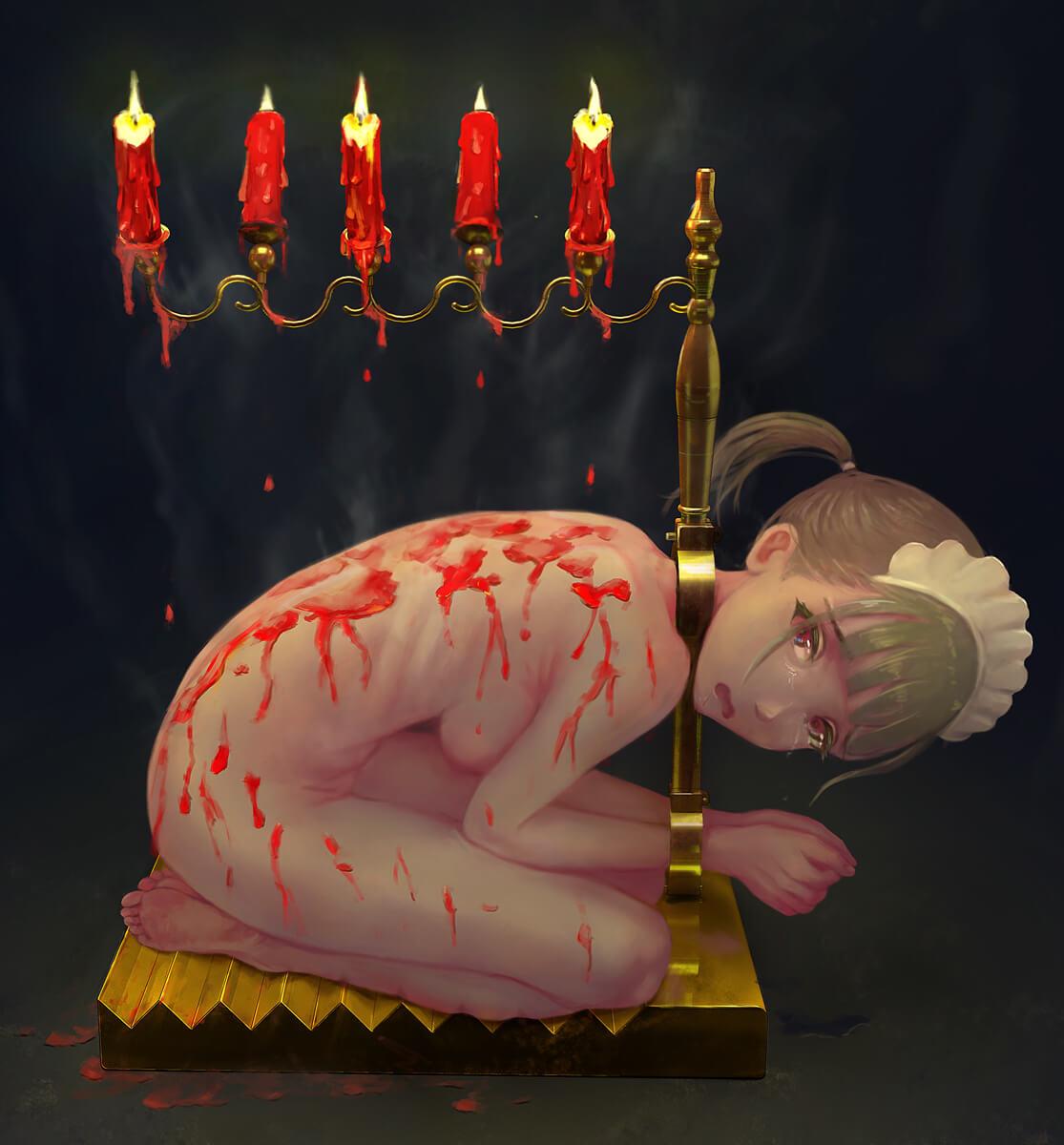 这时女仆小紫看见小姐回来了,也挪动着被锁着的双脚,艰难地走过来。