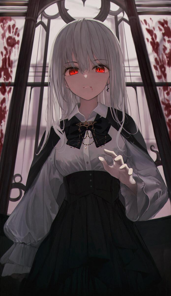 燕将军有着赤红色的双眸和几乎没有血色的雪白肌肤,表情与举止都显得冰冷而不带感情。