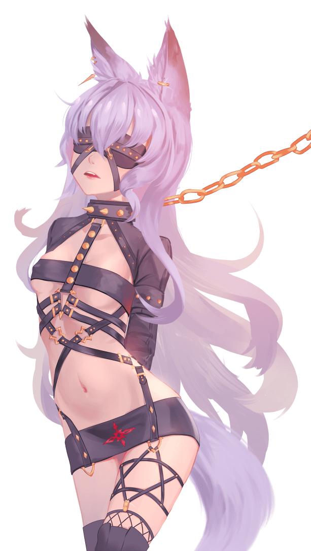 鼻环上挂着的长长的金色细链,穿过项圈上的圆环,与连接着乳_环的两条精金细链相连,使得她保持只能低着头看路的姿势。