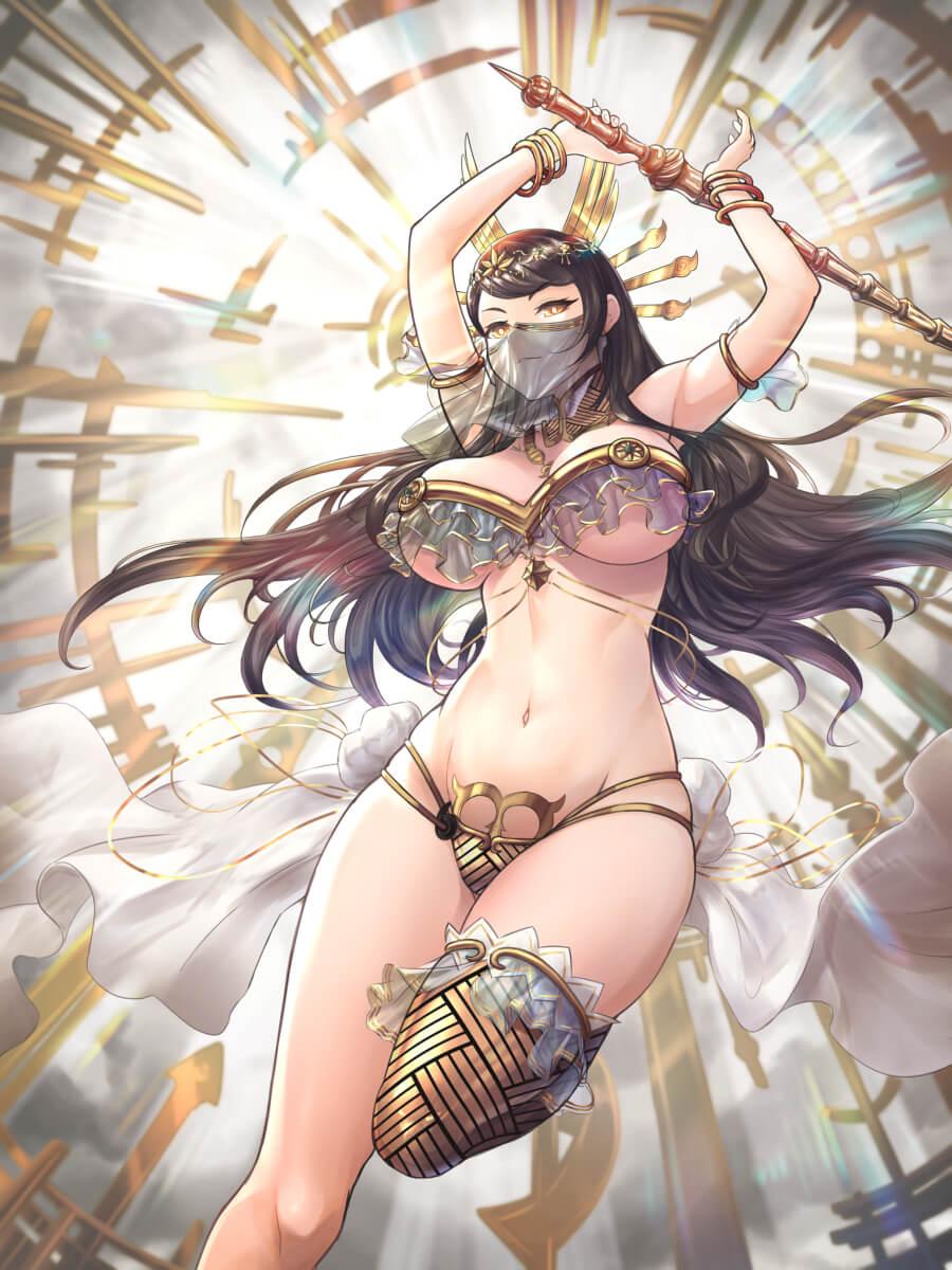 所以讲台边上的岚巧儿,现在穿着的也是一套由金属环链和薄纱组成的套装,有点像舞女的服装。