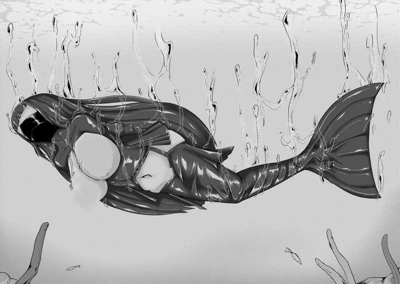 被彻底拘束的乳胶人鱼发出了最后一声微弱的、被扼杀在喉间的哀鸣,身躯做出了最终的无望扭动。但在乳胶与皮带的严密包裹与固定下