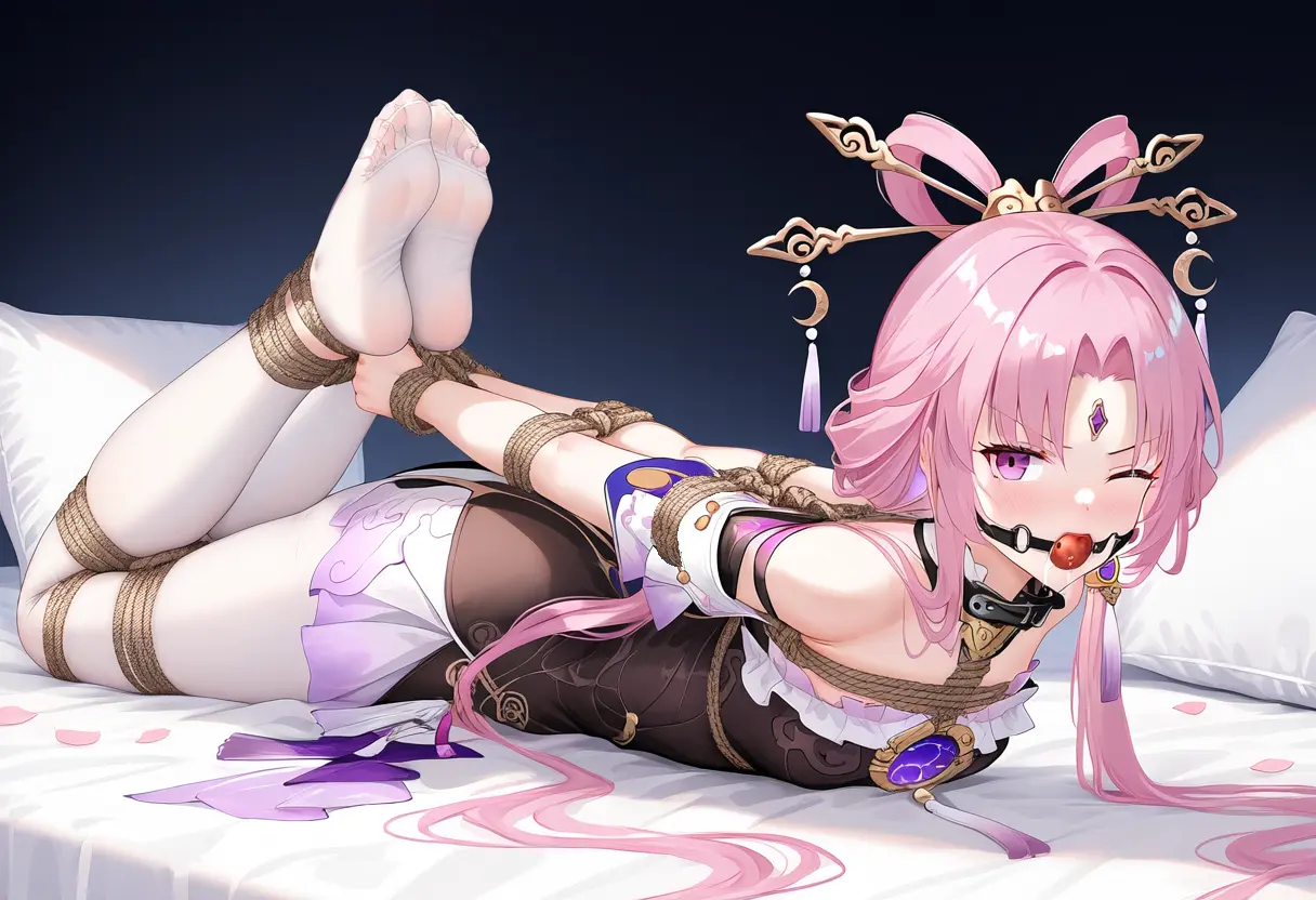 无论是名动天下,仙气飘飘的高冷仙子,还是武功高强,英姿飒爽的高傲女侠,亦或是妩媚动人,勾人神魂的娇艳魔女,甚至是身份尊贵,端庄优雅的王朝公主,都不过是尚既白的专属女奴罢了。这是一个无人不晓的古风缚美传奇。 截取片段:绳子最后交汇在美女的桃源处,绑了一个小小的绳结后,深深勒入美女的桃源之中,在腰部的绳子处系紧。 这样一来,美女一旦想要挣扎,就会牵扯到敏感部位处的绳子,让自己感受到强烈的刺激,那种感觉能让她爽上天去。 视线移到美女的下半身,只见一道道坚硬的绳索在美女的大腿和小腿处呈X字形向下缠绕,深深的陷在腿肉里,将修长的大白腿捆的凹凸不平。