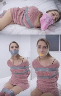 克洛伊正在照顾孩子,她很无聊。 突然,小孩子们向她走来。 克洛伊同意,他们想扮演警察和强盗。 她被胶带绑着,但仍然可以发出声音,如果他们找到解决方案可能会很好。 她的嘴被胶带缠住,在床上挣扎。 克洛伊低沉的呼救声只会让他们更加兴奋。 她的嘴被替换了……Chloe is babysitting and very bored. Suddenly the little ones are coming to her. They want to play cops and robbers Chloe agrees. She is tied with tape but can still make sounds it might be good if they find a solution for that. She is duct tape wrap gagged and struggles around on the bed. Chloe's muffled cries for help only add to the excitement of the game for them. Her gag is replaced...
