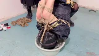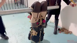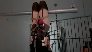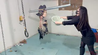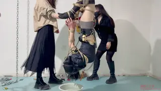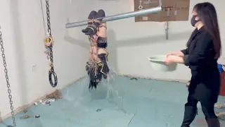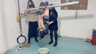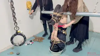 媚娘和水儿让穿着女装带着狗嘴的男奴自己带上钢构,戴上zd棒固定带就把它牵入牢房里了,今天玩得会很刺激,男m并不知道。水儿和媚娘同时捆绑,被超紧直臂束缚的奴趴在地上,双腿固定在杆子上,倒吊了起来,前有zd棒持续震动,后有水儿拿着另一根刺激着钢构,男m敏感的呜呜叫唤,玩的过程中媚娘已经把钢构上的绳子连在了男m头顶的环上,被倒吊着的男m只能强制直着头,当然,这只是为后面的水刑做准备。一满盆水毫无预兆的来到了男m头底下,随着摇杆转动,眼看着自己离水越来越近却又无能为力的感觉让男m害怕的全身战栗,一次,两次,在水中z息,脚心tk,屁股大腿被狠狠抽打,前后zd棒夹击和绳子越来越强的束缚感,把男m玩到感官功能都要紊乱了,不知道先感受哪个,刺激的只剩哭嚎。玩够了把男m吊高,媚娘一盆水全泼在了男m身上,全身都湿透了滴着水的小奴就被自己放置在了原地。“身上干透了,就放你下来”二人关灯离开了。