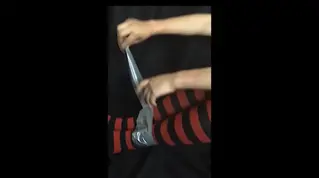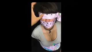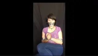A girl who simply dislikes being tied up with tape and tries to free herself, something very simple and calm.