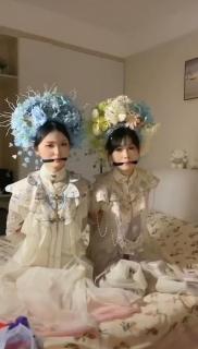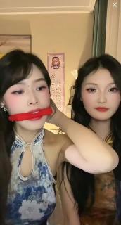 片名:主播堵嘴游戏66 户外绳衣+姐妹汉服堵嘴,鸭子坐展示
