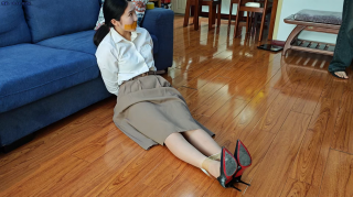 内容:透明胶带捆绑手脚 黄色胶带封嘴 放置挣扎 封嘴聊天 中途蹬掉高跟鞋