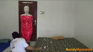A girl who had previously experienced being wrapped into a mummy with 2 layers of laban is now trying once again to be wrapped in a mummy with 2 layers of duct tape.