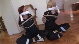 The police students are tied up in a lotus position on the floor, their mouth are shut with a nice looking white scarf OTM. It's a training for police rookies, because this is what the criminal are doing these days. They have started taking female police hostage for ransom and the girls need to be able to get out of the ropes.The good thing about this type of training is that guys and girls who love bondage, gets to see these cute girls struggle ;)