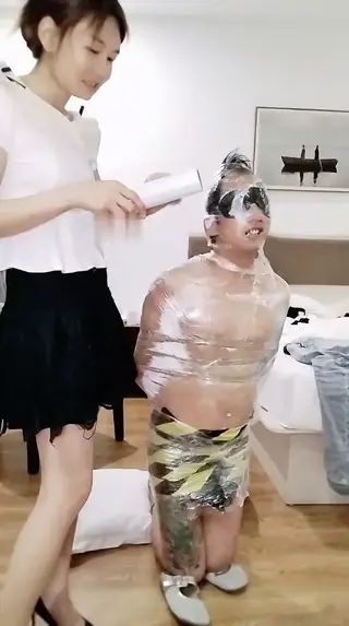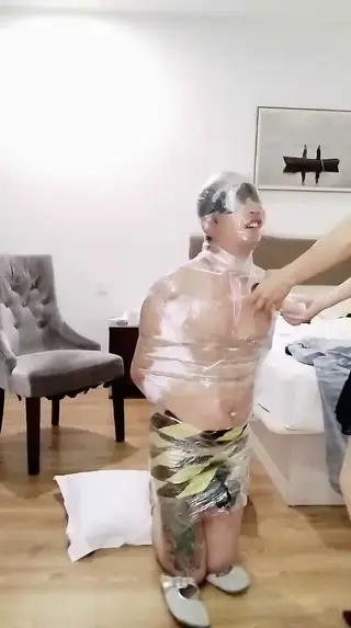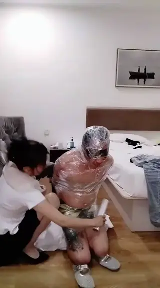 描述;【水[X_X]】保鲜膜捆绑重度虐打,保鲜膜全包紧缚内裤口球堵嘴重度虐,喜欢的请大家多多支持一下吧