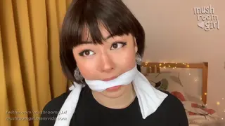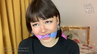 hello! this is a custom vid wherein i am "robbed" and made to try out 4 different cleave gags (lots of gag talk!), finally settling on one with stuffing. i then struggle in rope bondage for several minutes. enjoy !