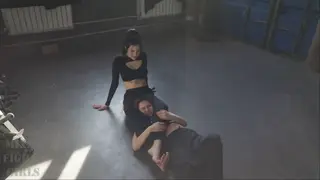 Brutal groin strikes delivered by the girls to each other — with no mercy. poor our superheroine