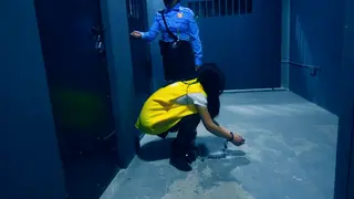 片名:落 网 完整版 女毒贩王丽娜为了金钱的利益铤而走险贩卖毒品,她被抓获交代毒品藏匿地点,带她指认现场, 女毒贩被宣判绞刑,宣判完被钉上特重刑死镣,等待绞刑