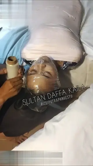 Indonesian girl wrapped as a mummy then becomes the mistress's bed partner