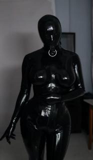 Ellie woke in a dim room, her body sealed in a glossy latex catsuit, encasing her from head to toe. The tight, unyielding material clung to her, every movement a faint creak in the shadows. A gag filled her mouth, a small hole letting drool drip endlessly, pooling on her chest. She could barely see, a tiny hole in the suit allowing only slivers of the faint light to reach her eyes. She couldn’t speak, only whimper, the suit her suffocating world. Each breath rasped through the gag. Her hands fumbled over the seamless latex, seeking escape. There was none. The suit was her now—her prison, her skin, her eternity.