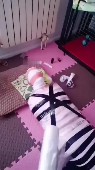 描述;【妃妃】捆绑全包木乃伊狗,保鲜膜丝袜全包木乃伊虐狗,喜欢的请大家都多多支持一下吧