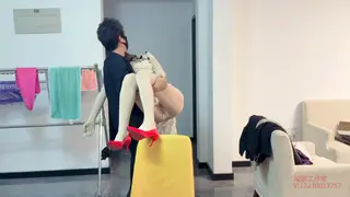 男主马上去上班了,随后看着s体干净美丽的样子,希望她能每天漂漂亮亮的迎接他回来,送她去上班。他将穿好旗袍和红色高跟鞋的女孩从屋里抱出来,放在正对门的凳子上,用两只钢管固定在女孩的身体上,和一只胳膊的小臂上,做出“你好”“再见”的打招呼的样子,将双腿,脚踝固定。将女孩固定好后,于是对s体说:“我去上班了,你在照顾好咱们的孩子”,于是将猫咪放在她身上,男主走到门口对他拜拜,s体举着手“回应”,随后男主离开了。