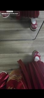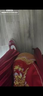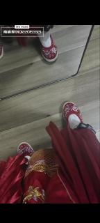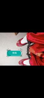 逃跑失败的禾秀新娘,穿着红色禾秀婚服裙,脚上踩着红色绣花鞋,搭配白色棉布袜,若隐若现的裙摆和渐露出的白袜和鞋尖,尽显中式的委婉美,可怜无情的被戴上沉重的黑色脚镣,在若隐若现间夹杂着一根粗重的铁链,莲步一息一动间透露着深深的无助感,与束缚感。