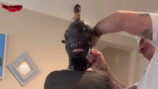 绑好后,她绑好的头发将被绑在她背部的一个锚点上,大脚趾将被紧紧绑住,让她摆出一个高度顺从的姿势。Ms McReese will be hooded with a Gwendolyn style latex hood, blindfolded with a crisscross leather strap device, then wrapped in vetwrap to be cinched in with leather straps.