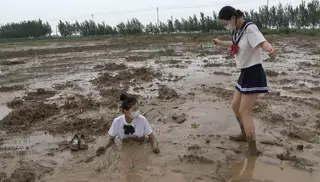 已购36次 片名:SS4 小姐姐在外面玩耍不小心掉入泥潭,另一个小姐姐尝试救她但是因为怕脏用腿拉她,但是也陷入泥潭