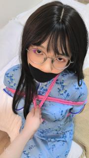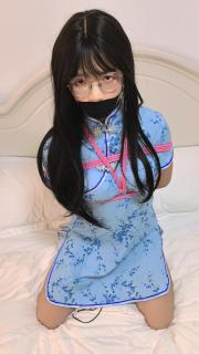 已购99次 片名:线下约玩!超好看可爱傲娇性感伪娘猫又!蓝旗袍长筒白丝粉绳捆绑床上挣扎!
