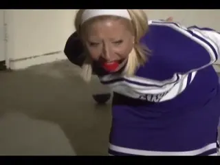 Cheerleader Maria Graca (Crystal Frost) shows up for what she thinks is going to be a layout in a popular women's sports magazine. She poses for a few glamour photos but soon is grabbed and taken into the garage where zip ties (cable ties)are used to tightly hogtie her in her uniform and sneakers. She is ball gagged and struggling.