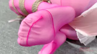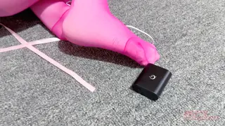 瑾年穿着粉色泳装,白色丝袜加粉丝丝袜,上半身五花,下半身M字腿,双R贴着电击片,X体放着能够根据声音大小不断变换震动频率的td,带着鼻勾,口中还带着口球,双眼被丝袜蒙着。开启电击片,瑾年十分害怕,开始叫,一叫X体的TD开始工作,弄着瑾年又骚又怕,不断挣扎着,嘴里时不时冒出浪叫声......没一会瑾年实在是受不了X部的刺激,努力跪了起来,用脚摸索着电击片的控制,但是并没有任何作用,她无法控制自己的脚关掉开关,X部带来的刺激让瑾年忍不住大叫,不断地大叫,又让X体的TD不断震动,瑾年不断骚叫着,就这么被困在这里......