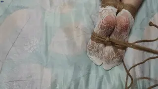 本来是想拍一个捆绑挣扎的,结果模特来了之后非要贪吃吃了我的两颗褪黑素软糖,刚吃完还信誓旦旦的说绝对没问题。结果刚一绑完就感觉有点精神恍惚了,出去一趟之后回来再叫就没反应了...该说是这褪黑素效果太好了还是模特心太大了??好在这个蕾丝小白袜很可爱~