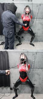 再戴上鼻钩,拳击虐腹,佩戴充气口球窒熄折磨。